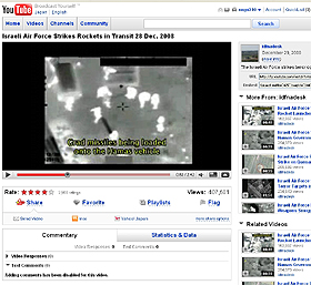 このシーンは、イスラエルの国防軍がユーチューブに現地時間2008年12月28日に投稿した3分弱の動画だ。空軍がハマスのロケット砲部隊を攻撃する様子を空から撮影している。人が動くのが見えるなどと反響を呼び、09年1月6日までに40万回以上が再生された。