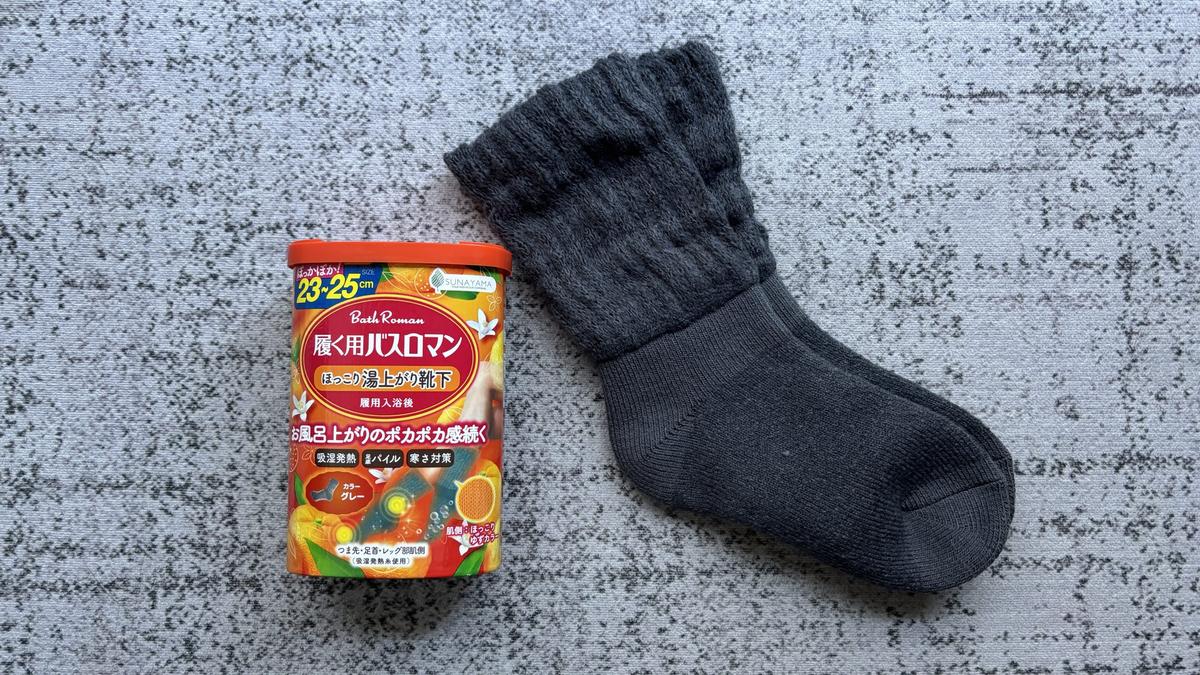 入浴剤?と思いきや「靴下」です。履いてみたら足の冷え方がまったく違ってね…