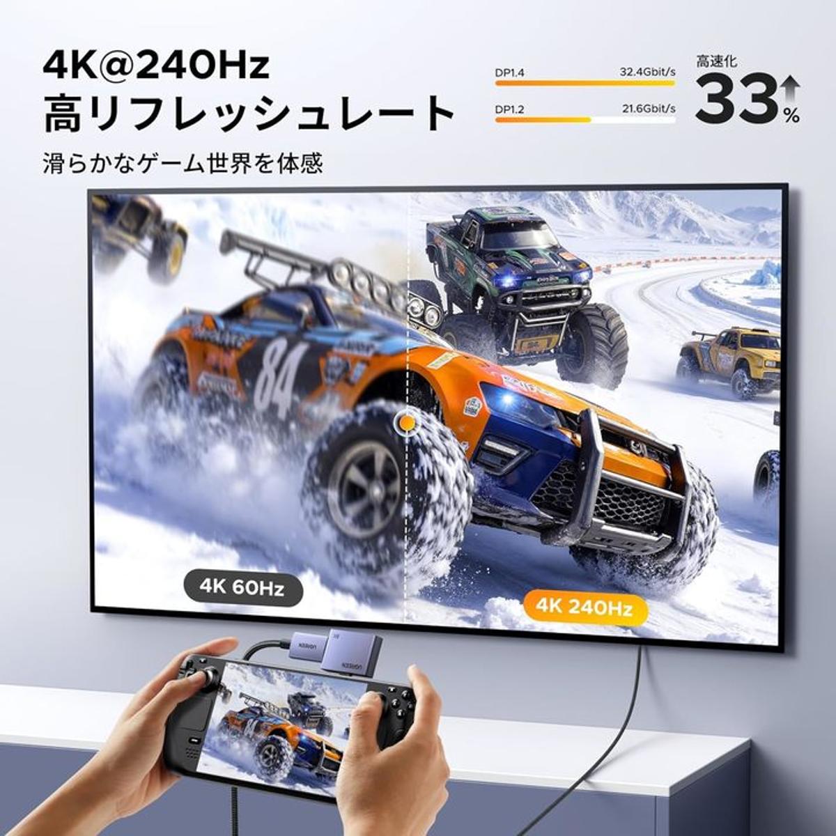 これはPCとモニターなどのディスプレイ機器を接続するための映像インターフェースの国際規格の最新版で、リアルかつ色鮮やかな映像体験を可能にしてくれます。