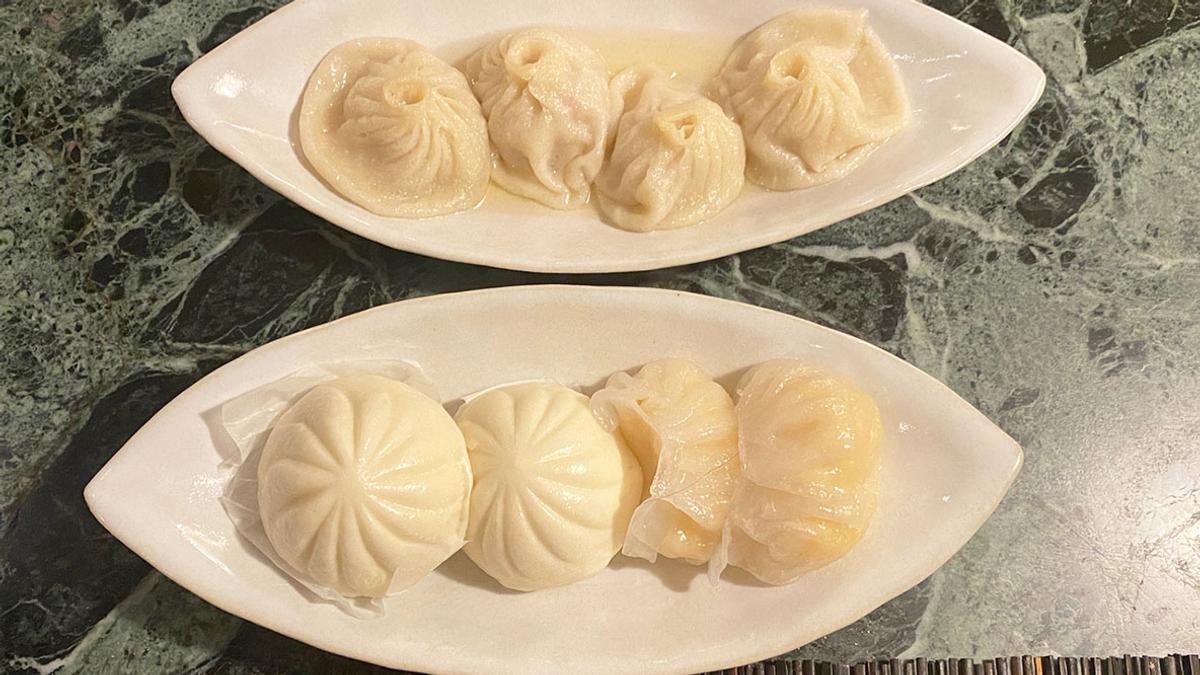 飛雁閣の「小籠包」「ミニ豚まん」「蒸しえび餃子」を食べた。