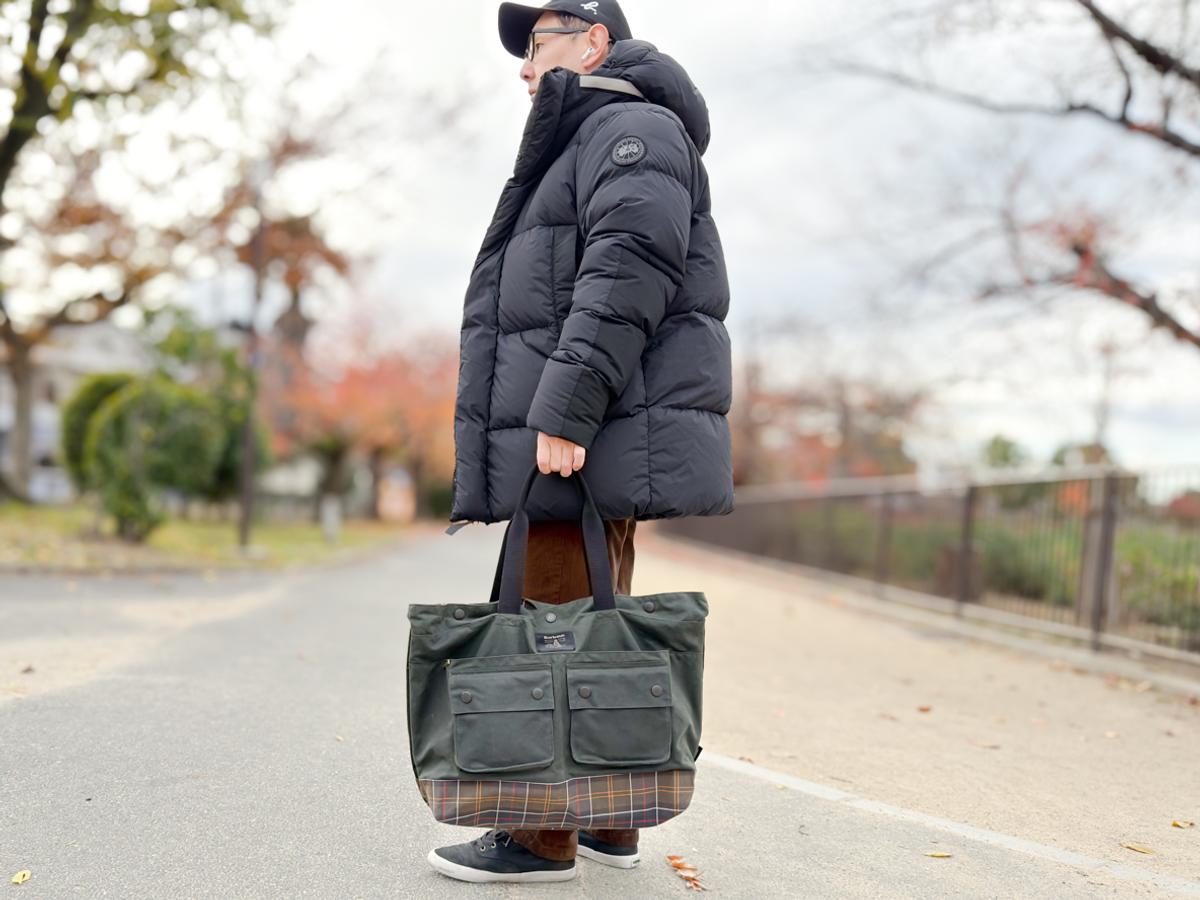 冬になるとダウンやコートを着ることが多いため、リュックはちょっと背負いづらい。そんな理由から、冬のコーディネートに合うトートバッグを探し始めました。