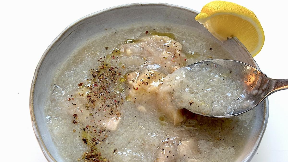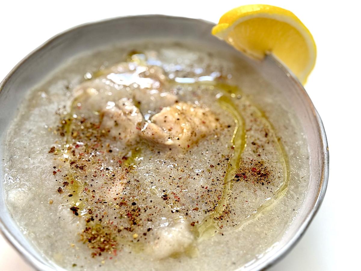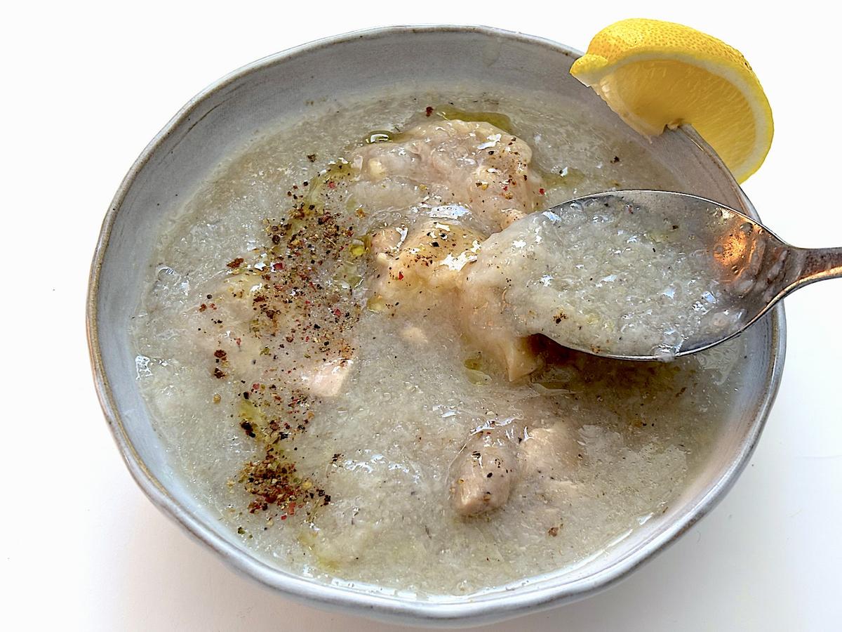 とろりとしたれんこんのテクスチャーとレモンの酸味のアクセントで、飽きずにいただける美味しいスープです。