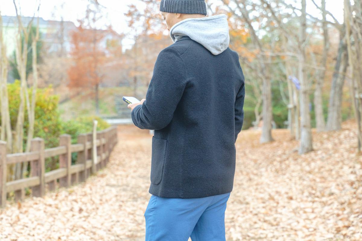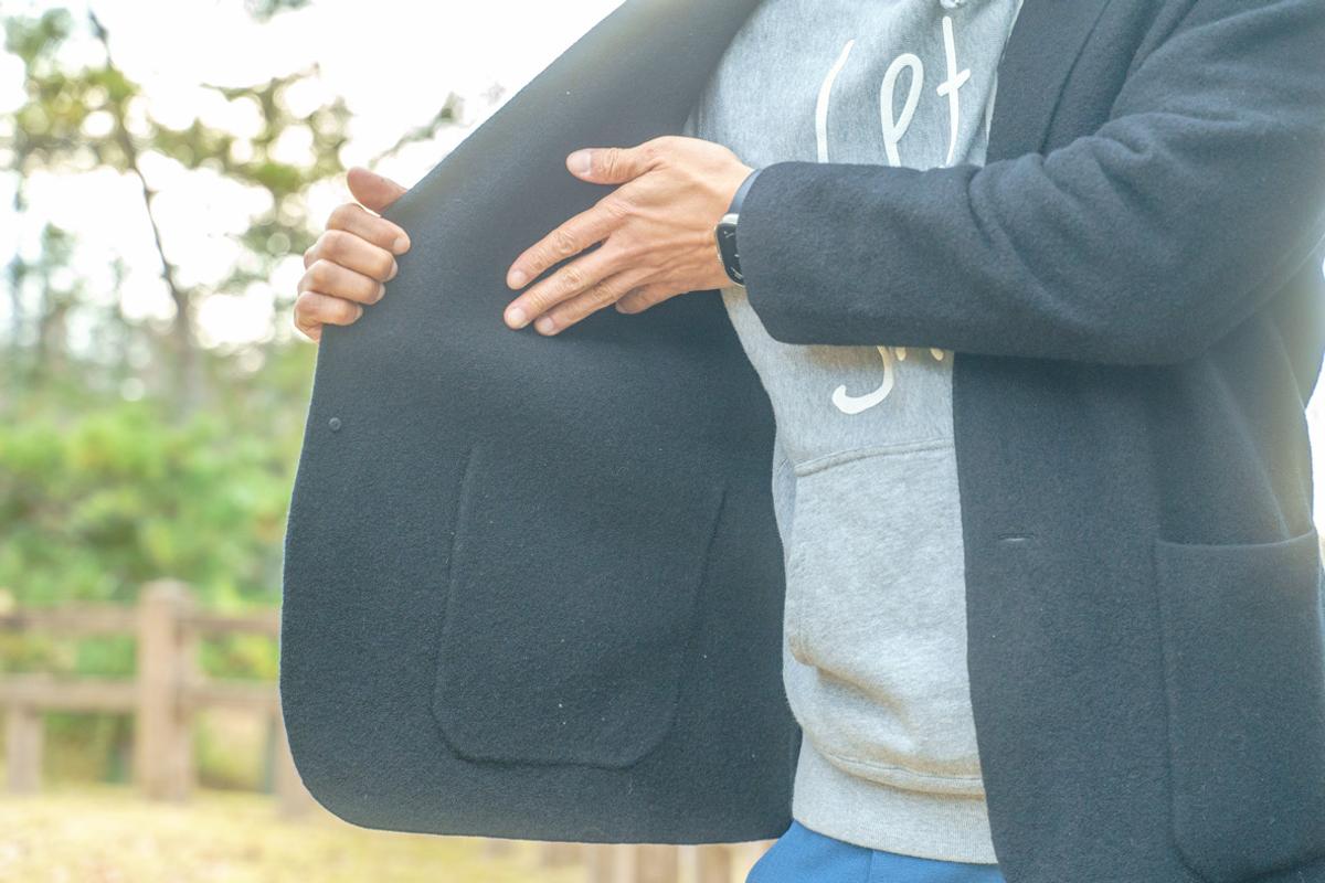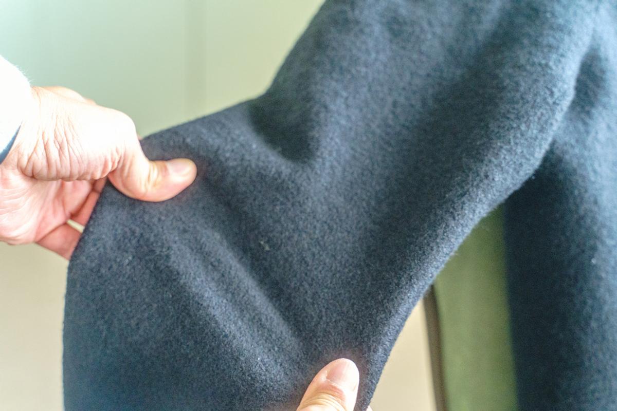 ウールブレンドの素材は程よい厚みがあり、そのおかげで防寒性も想像以上。