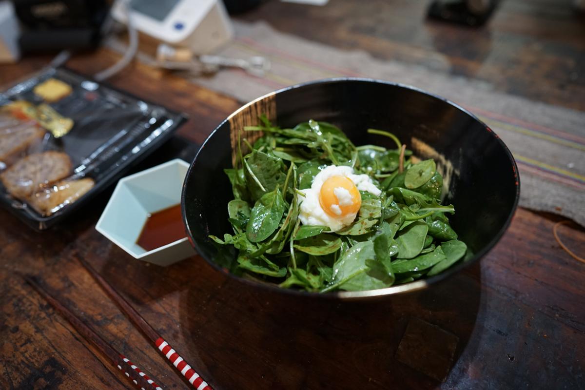 温泉たまごがあるだけで、素うどんが卵かけうどんになり、サラダは見栄えも味もアップ!