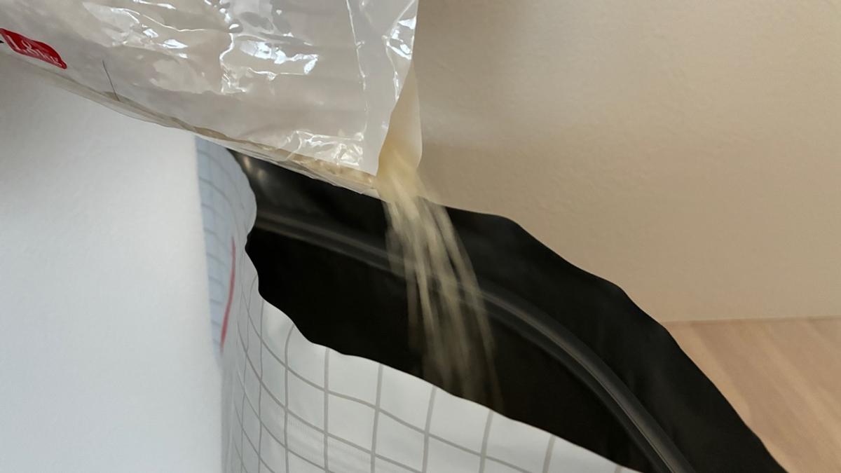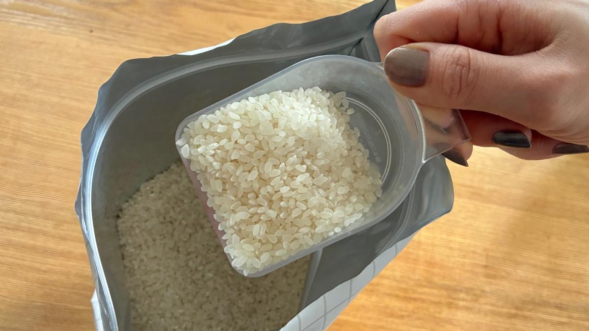 ハリのある素材で、お米を入れるときもすくうときも、袋がふにゃっと倒れないのでストレスなし。