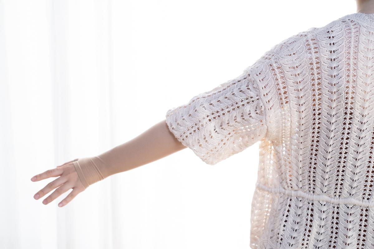 肌が透けて見える服でも、印象を変えることなく日焼け対策ができます。
