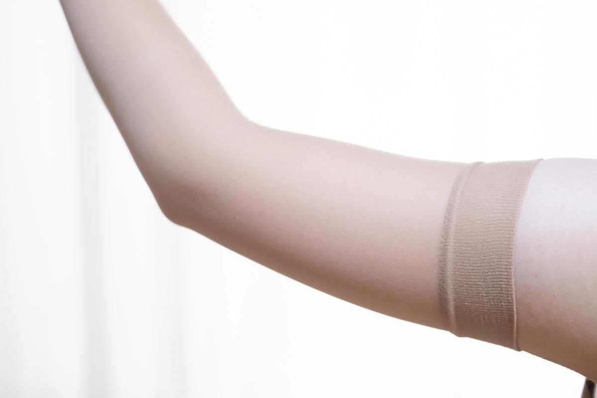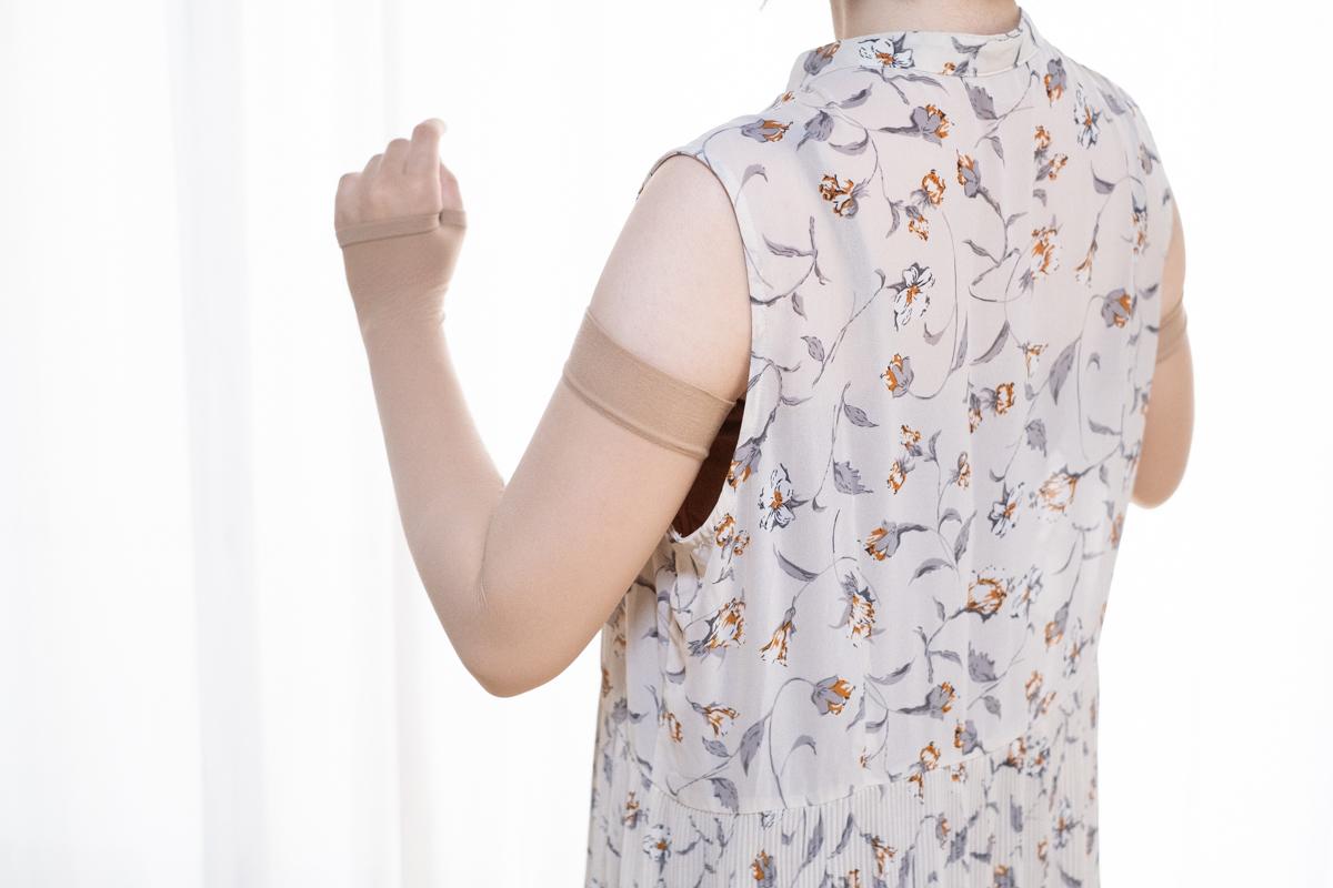 二の腕の上の方までカバーしてくれるから、袖丈の短い服でもしっかり日焼け対策ができます。