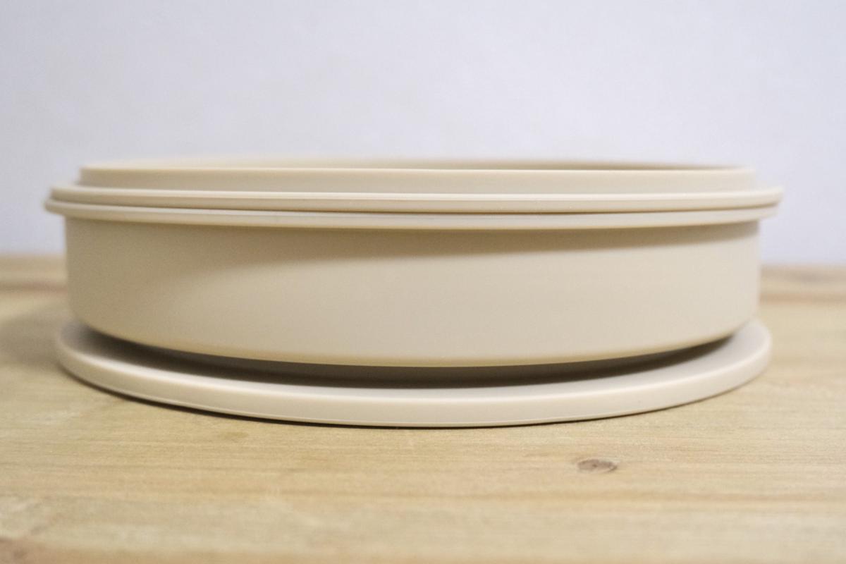 直径約21cmとたっぷり入るサイズ感ながら、フタを裏返して重ねると約5cmの薄さに。