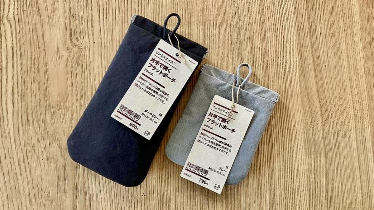 無印良品 「リンクルナイロン 片手で開くフラットポーチ S」790円(税込)/「リンクルナイロン 片手で開くフラットポーチ M」990円(税込)