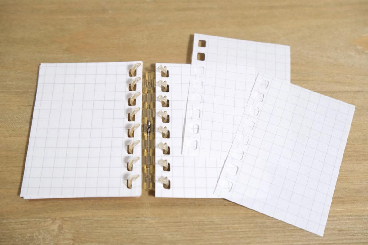 使い終わったページを入れ替えたり、必要な分だけ持ち歩いたりと、用途に合わせて中身をカスタマイズできます。
