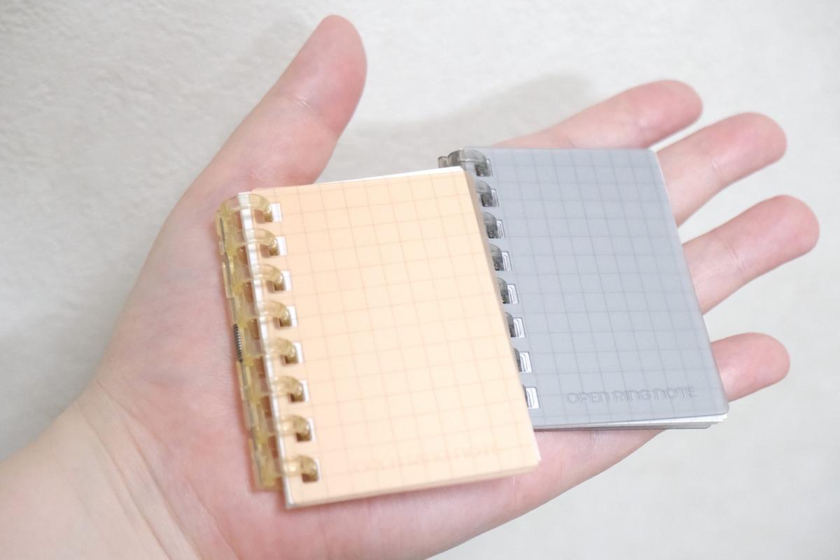 ミニサイズよりもひと回り以上大きく、しっかり書き込めるサイズ感の「オープンリングノート メモサイズ」もオススメ。