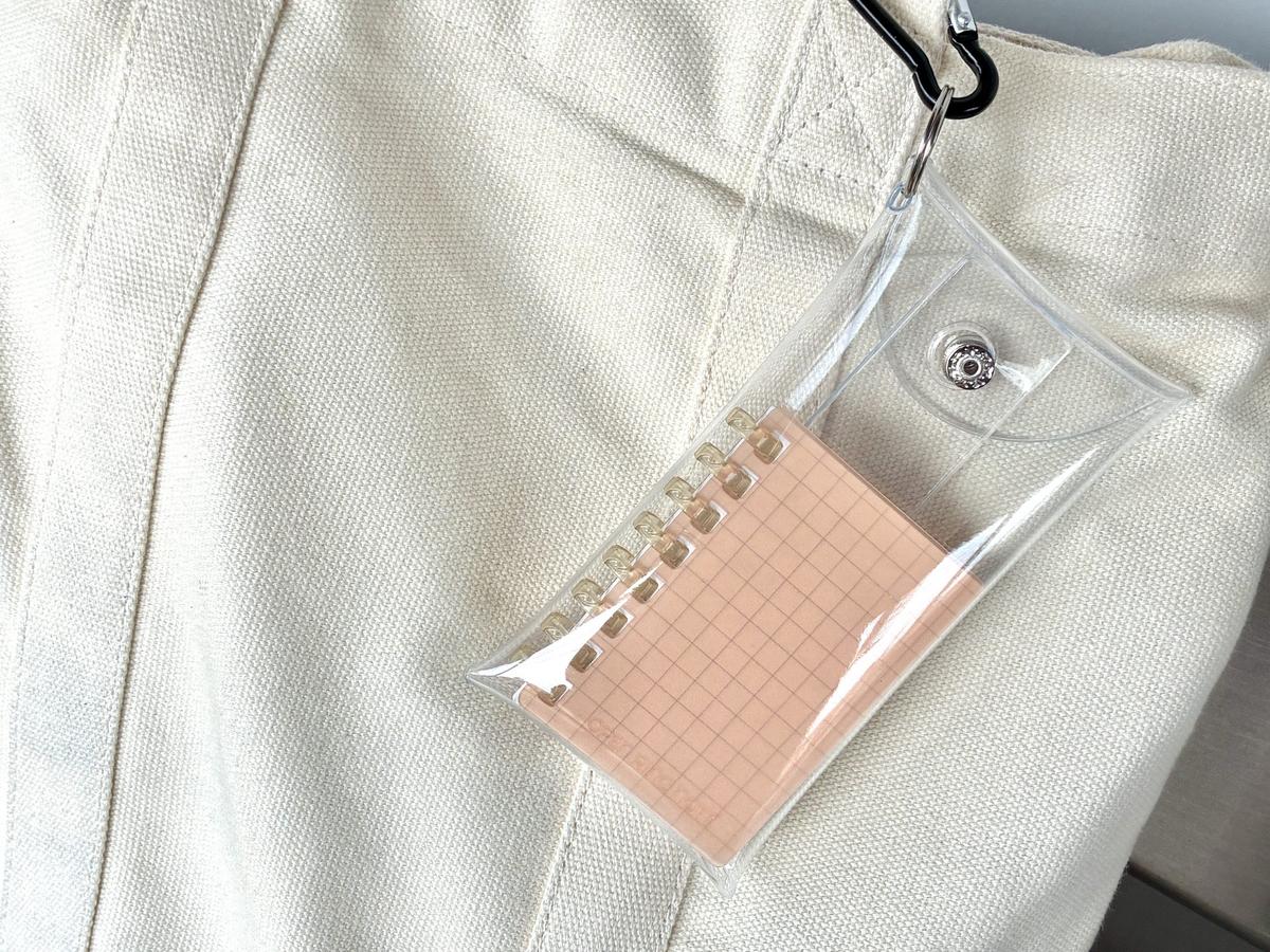カラビナ付きのクリアポーチに入れてバッグに取り付けるのもかわいく、持ち歩く楽しさも広がりますよ。