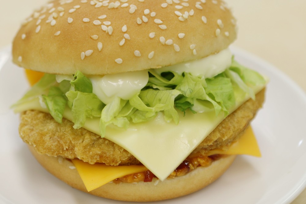 編集チームのKがおススメするのは、チキンチーズバーガー(チキチー)+ホワイトチェダーチーズ+ガーリックチリの組み合わせだ。