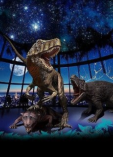恐竜が誕生したといわれている約2億3000万年前の三畳紀の世界が、地上52階(海抜250m)に出現。併設された展望台「東京シティビュー」では現代の東京の街の景色と三畳紀の世界を一緒に楽しめる。また、毎週金曜日の閉館後には、懐中電灯を片手に会場内を探検する「ナイトミュージアム」や、骨格標本の下で夜景を見ながらお酒が飲める「恐竜バー」、粘土を使った恐竜造形教室、恐竜折り紙が体験できる「恐竜ワークショップ」などの催しもある。