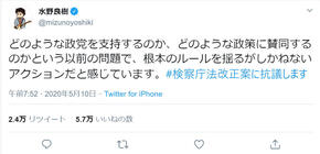 「#検察庁法改正案に抗議します」というワードがツイッターのトレンドに入るなど、国家公務員法等の一部を改正する法律案について...