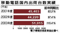 一方で通信速度は高速化の道をたどっている。これに加え、デジタルカメラ機能が付加したことにより、携帯電話の出荷は底堅いものとなった。いまや最新の携帯電話の多くは、200万画素以上のカメラ機能を搭載しており、利用者は日常的にカメラ機能を使っている。機能を増やした結果、携帯電話端末は100グラム以上のものが増え、大画面の液晶を搭載するケースがほとんどだ。
