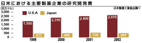 2003年に米国のファルマシアを吸収した新生のファイザー(米国)の医療品の売上高は400億㌦以上に達する。これは国内首位である武田薬品工業の6倍弱の規模だ。