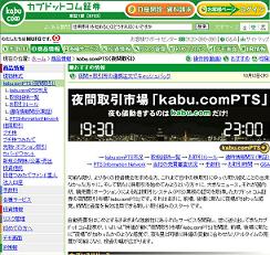 インターネット専業のカブドットコム証券が2006年9月15日に国内初の本格的な株式の夜間取引(私設取引システム=PTS)をスタートさせて1カ月余が経過したが、苦戦が目立っている。取引に参加する個人投資家が予想に反して少なかったため、売買代金は当初目標を下回った。日本証券業協会の安東俊夫会長は10月 17日の会見で「感想と言われても評価のしようがないが、順調に推移しているということではないか」と冷ややかに述べた。