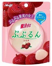 グミを二重にした「ダブル食感」の「果汁グミぷぷるんライチ」明治製菓は2007年7月10日から、「果汁グミぷぷるんライチ」を発売する。「果汁グミぷぷるん」シリーズ商品の最新作で、ライチ味でコラーゲンも豊富に含まれているという。参考小売価格は1袋(45グラム)105円(税込み)。