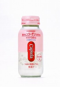 サントリー「カプセラ<うるおい浸透カプセル>」サントリーは、「カプセラ<うるおい浸透カプセル>」を2007年11月20日より全国で販売する。サプリメントの粒が浮いて見えると好評だった「カプセラ<ビタミンカプセル>」に続く第2弾として売り出すもの。コラーゲン2,000mgとビタミンB1、B6を配合。粒の部分には、水に溶けにくい成分セラミドを独自の技術により封じ込め、うるおい感が口一杯に広がる。味はピーチ。価格は237円(税別)。