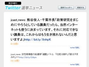 第45回衆議院選挙の投票日となった2009年8月30日、インターネットのミニブログサービス「ツイッター(Twitter)」では、「投票なう」と書いて投稿する人が続出している。政権交代がかかった選挙で、「いま投票に行ってきた!」という有権者の高揚感が伝わってくる。Twitterは1回140字まで投稿できるミニブログサービスで、日常生活のちょっとした行動や思いつきを「つぶやく」ように気軽に投稿できるのが特徴だ。アイフォーン(iPhone)などの携帯端末からも簡単に投稿できるため、どこかに行ったり何かをしたりしたときに「○○なう」と投稿するのが半ば習慣化している。正式な投票日の30日は、午前7時ごろから、Twitter上で「投票なう」や「投票所なう」とつぶやく人が相次いでいる。「徹夜明けついでに投票なう。平均年齢高い」「投票なう。結構ひっきりなしに人が入ってる。天気もいいし、投票率も高そうだ」といったように、投票所の様子を書き込む人もいて、「選挙の現場」をリアルタイムに伝えている。