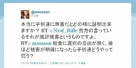 そして、孫正義ソフトバンク社長は、ツイッターで5月18日、武田教授の発言を元に、「給食か弁当の選択の自由を提供していないとすれば大問題」と断じた。福島県産などに出荷制限要請が出ている食材が多く、放射能に敏感な子どもたちに無害だとは証明できないのではないかというのだ。孫氏は、放射性物質について、体内に入ると内部被曝になるため、数値が低いγ線ばかりでなく、α、β線も測定すべきだともしている。