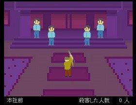 ゲームの内容自体はきわめて単純で、刃物を持ったプレーヤーが、エレベーターホールや食堂、休憩室など社内のあらゆる場所で、登場する人物を「ネジ込み」「ブッ刺し」「9条ナイフ」といった方法で切りつけるというもの。人物を切りつけると血を流して倒れるが、プレーヤーが攻撃されることはない。