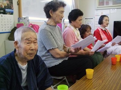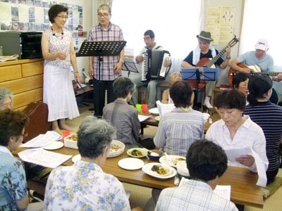 この日の参加者は近隣の仮設入居者を含めて約30人。黒沢ウタ子さん(83)は富士登山をした後、昨夜の夜行バスで一睡もしないで戻ってきた。「アイビーの会とゆいっこさんが来てくれると聞いたので…。分け隔てのないこの雰囲気が大好き。被災者とか支援者とかではなく、みんなひとつになって一緒に歌を歌う。そこから未来への希望が生まれるような気がするの」と黒沢さんは声をからした。