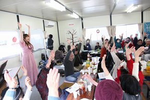 AARは仮設住宅で暮らす方々の交流の場となるようなイベントの開催や、手作りバッグやチョコレートと共に全国から寄せられた応援メッセージを被災者にお届けする活動も行っています。