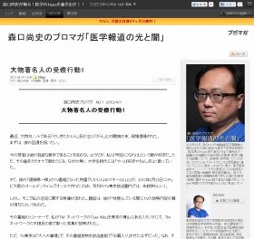 開始日は「エイプリルフール」の2013年4月1日。トップページには手術着姿の森口氏の写真が掲載される。肩書きは「元東京大学特任教授」で、「医学報道の光と闇」を暴く連載になるという。さっそくお金を払って購読してみたが――