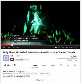 「これは初音ミク革命だ」―――人気ボーカロイド・初音ミクがカナダの「ディスカバリーチャンネル」で特集された。