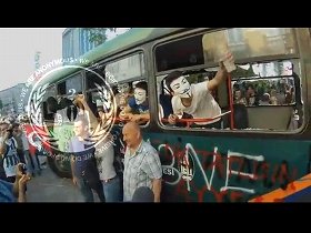 市営バスを破壊しATMから現金を盗む
