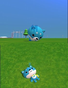 それからしばらく経ち、「こんどこそ二頭身の着ぐるみができたし、ちょうどmeet-me6周年記念イベントも実施中なのでぜひ」――という誘いを受けてログインしてみたところ、現れたのが右だ。