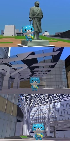 鼻を高くしたカス丸は、さっそく6周年記念イベントの会場を求めてmeet-meの探索をはじめた。meet-meは東京の街並みを再現した仮想空間。千代田区にはジェイ・キャスト本社もあるということで、さっそく尋ねてみたのだが……。