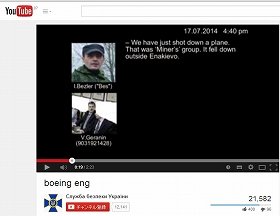 何者かによって撃墜されたことが確実視されているが、ウクライナの情報機関は、「たった今、飛行機を撃ち落とした」などという通話の内容をユーチューブ上に公開した。この通話は親ロシア派の武装勢力とロシアの情報機関のメンバーの間で行われたとされ、ソーシャルメディアでも激しい「空中戦」が展開されている。