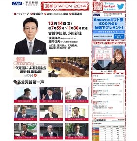 「選挙ステーション」は2014年12月14日の新聞各紙ラテ欄に、「テレ朝だけ何か違う!番組冒頭からどの局もやらない初めてのこと」と予告していた。大きく出た割に、具体的な内容は書かれていなかった。放送開始前、ツイッターでは、