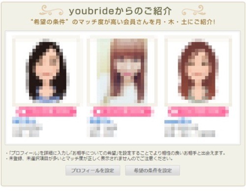 youbride」はミクシィグループが提供している会員数90万人の最大級婚活サイトとのこと。登録された会員間でパートナーを探すタイプの婚活サイトらしい。驚愕だったのは、「年間2000組の結婚を前提としたカップルが誕生」という実績。これ、すごすぎないか。どんだけ少子化解消に貢献してるんだと。