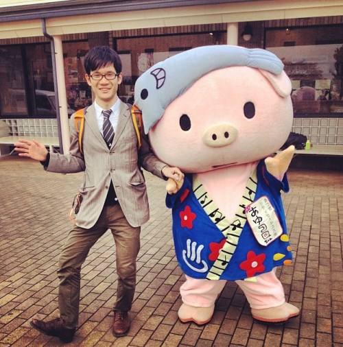 厚木のマスコットと一緒に、ほがらかさをアピール。初対面の男性と会うことに不安を感じる女性も多いはず。変だけど悪い人ではないと知ってもらうことが第一。