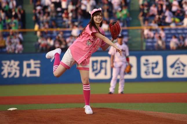 乃木坂46の白石麻衣さん(22)が2015年5月26日に東京・神宮球場などで開幕した「日本生命セ・パ交流戦」ヤクルト対日本ハムの始球式に登場した。白石さんがプロ野球の始球式に登場するのはこれが3度目。