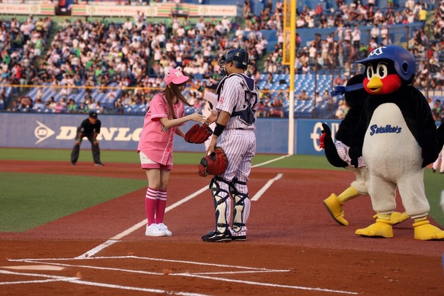 • 始球式直前にはヤクルトのヤクルトの小川泰弘投手からボールの持ち方についてアドバイスを受けた