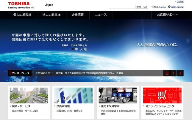 問題は拡大の一途を辿る(画像は東芝のホームページ)