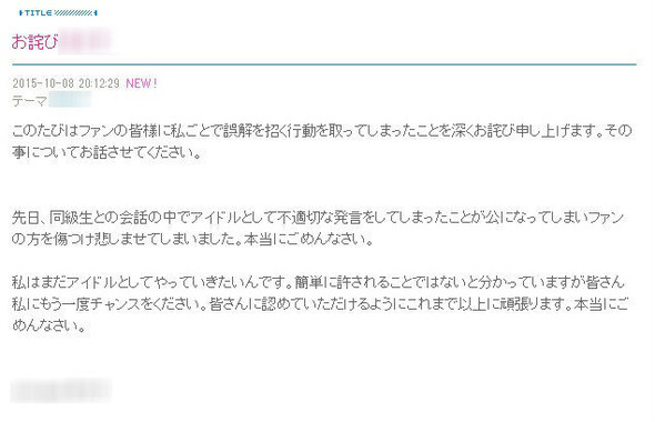 その後、メンバーと所属事務所は事実であることを認め、謝罪した。ところが、「アイドルを辞めろ!」などと騒ぎは収まらず、謝罪したブログのコメント欄も炎上した。