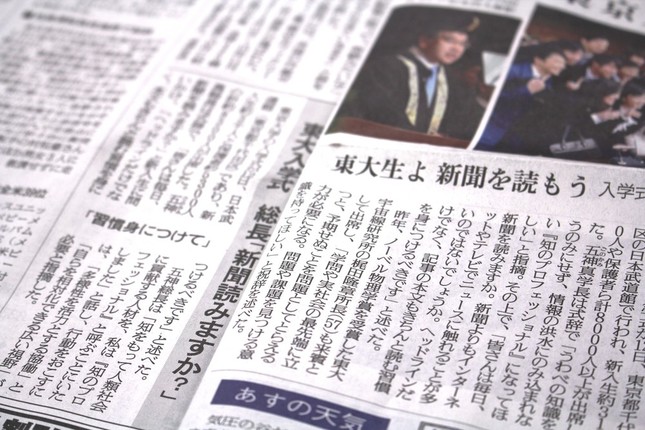 読売新聞電子版は4月12日付けで「東大生よ、新聞を読もう...入学式で五神学長」という記事を公開した。