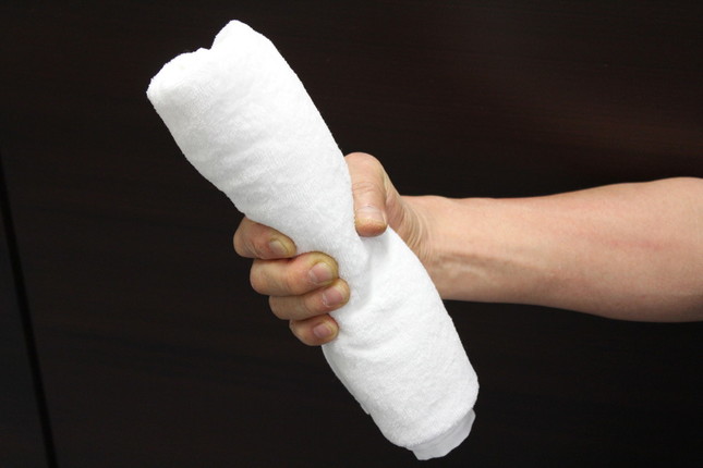 ところで、「デジタル握力計」は、通販などで買うと約2万円かかるが、もっと手軽なやり方で行なう裏ワザがある。2014年3月26日放送のNHK「ためしてガッテン 世界が注目するハンドグリップ」で紹介したのが、タオルを握る方法。高血圧予防の専門家、久代登志男・日本大学医学部教授と岡本孝信・日本体育大学教授のオススメが、次のような非常に簡単な方法だった。