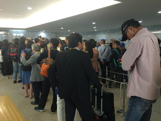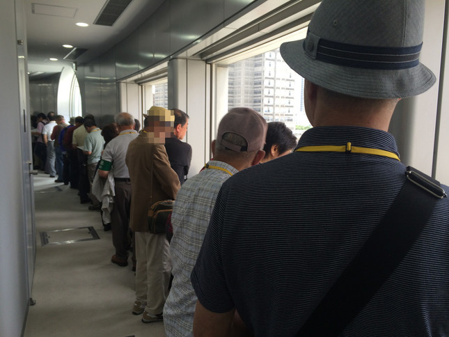 記者が議事堂に到着したのは11時50分ごろ。一般傍聴券の配布は12時から先着順で行われたが、すでに受付前には100人以上の男女が長蛇の列を作っていた。受付前に用意されたスペースでは希望者が収まりきらず、列は廊下まで伸びていた。