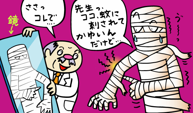 方法はとても簡単だ。「鏡を見ながら、かゆい場所の反対側をかくと、あたかもかゆい場所をかいているように錯覚し、かゆみが治まる」というもの。この研究は、2013年12月26日付の科学誌「プロスワン」(電子版)に発表された。その論文によると、ヘルムヒェン博士は対象者たちの右腕の前腕部に人工的にかゆみを起こさせ、2つの実験を行なった。
