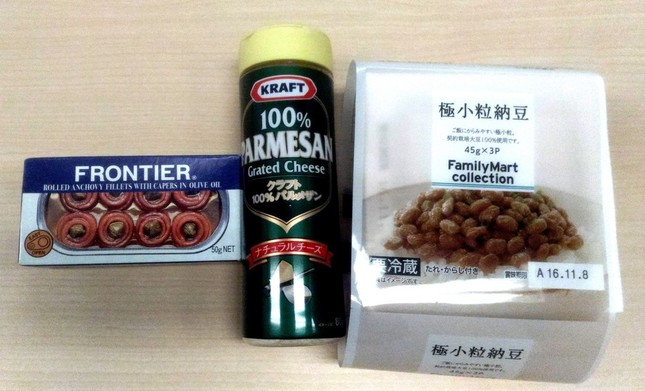 納豆、アンチョビ、粉チーズ。普段は一緒に食べることがない3種類の食材を「一体化」させたら、おいしくなるだろうか。「発酵食品」という共通点はあるが、混ぜてどんな味になるかは想像がつかない。低予算で栄養満点、さらに「激ウマ」の新たな食べ物が誕生するといいのだが、試食した結果は?