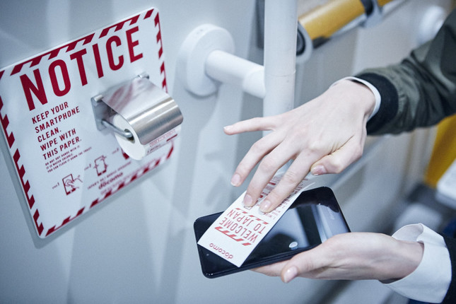 スマートフォン専用の「トイレットペーパー」が成田空港の一部のトイレにお目見えした。開発したのはNTTドコモだ。ただし、お尻ではなく、皮脂で汚れたスマホのディスプレーを拭き、トイレに流すのがお約束だから気をつけよう。