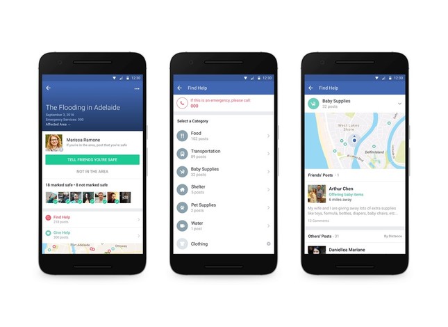 災害が発生し、被災地域にいるユーザーからの投稿が一定数に達すると「災害時情報センター」というページを利用できるようになり、フェイスブックから安否を知らせるよう促す通知が届く。通知はユーザーが登録した出身地や居住地と言った都市や位置情報をもとに送られる。「自分の無事を報告」を選ぶと、フェイスブック上の友達に安全が報告され、被災地域にいなければ「影響を受けた地域にはいません」を選べる。一方、災害時情報センターにアクセスすると、友達の安否情報を一覧で確認できる。