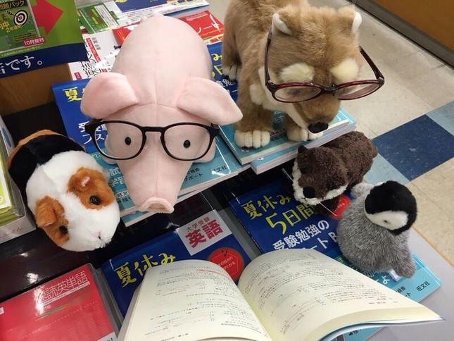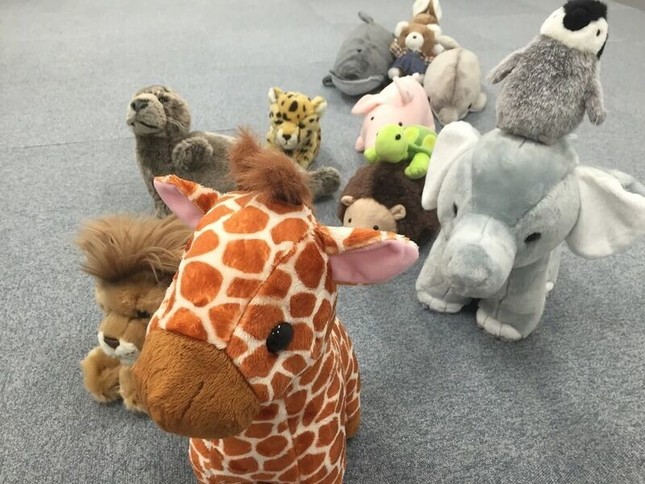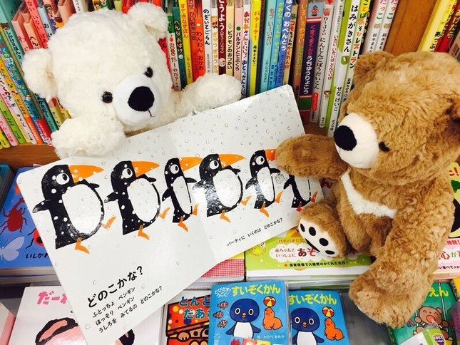 ぬいぐるみ同士が絵本を読んでいる写真を見せる